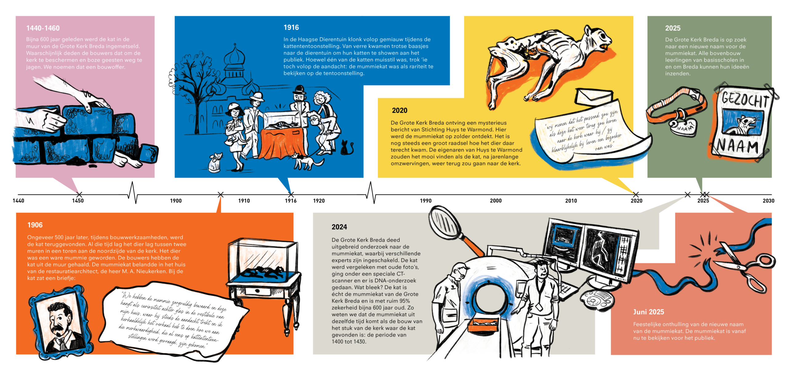 Bekijk hier de tijdlijn online: https://www.grotekerkbreda.nl/nu-te-zien/mummiekat